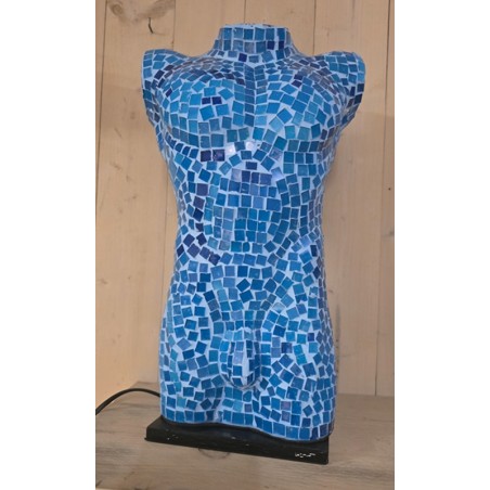 Lampe d'ambiance faite à la main en mosaïque de verre avec de très belles nuances de couleurs. La mosaïque de verre est appliquée de manière artisanale sur un moule en polyester.