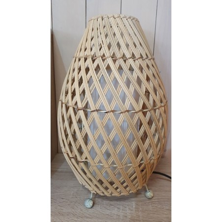 Éclairage diffusé : La cage extérieure en osier entoure un diffuseur intérieur cylindrique en tissu blanc ou en maille, adoucissant la lumière pour une lueur ambiante chaleureuse, accueillante et sans éblouissements.